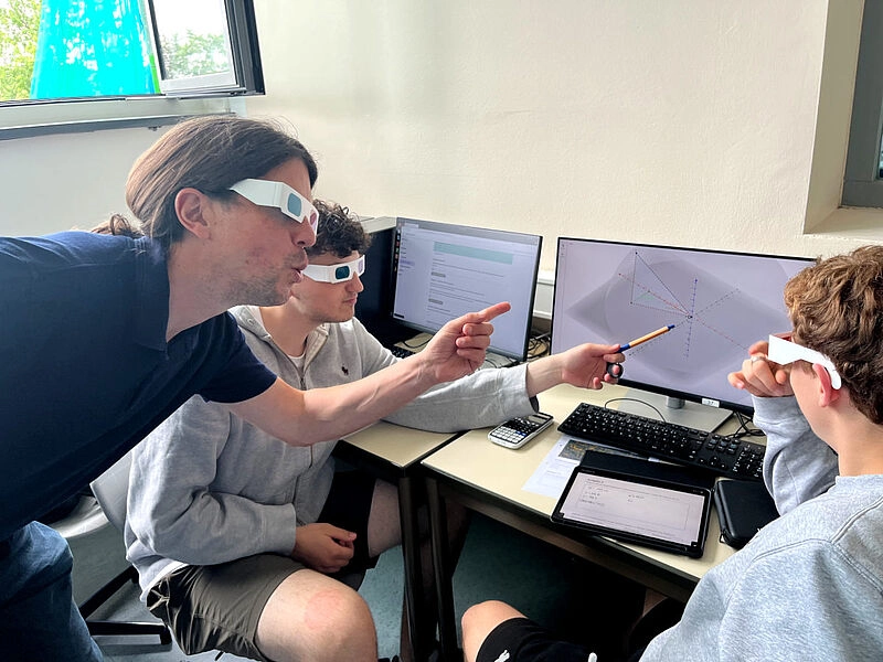 Im Juni 2023 kamen Mitarbeiter:innen der TU an die RHS und führten mit den Schüler:innen das Unterrichtsprojekt „Ein sicherer Flug“ durch. Bei dieser anwendungsorientierten digitalen Lernumgebung ging es um die mathematischen Aspekte der Flugsicherung, die auch anschaulich dreidimensional dargestellt wurden. (Einen ausführlichen Bericht dazu findet man unter dem Fach Mathematik „Link“.)