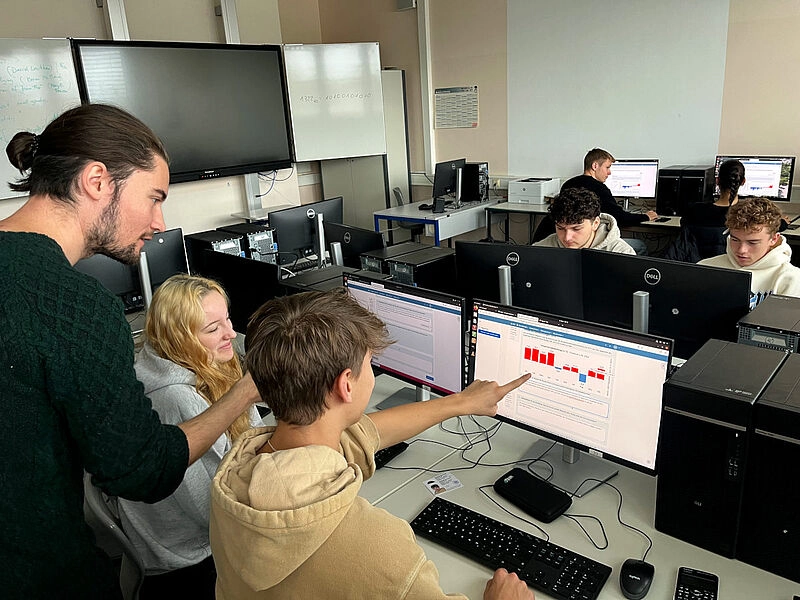Im November/Dezember 2023 kam ein weiterer Mitarbeiter der TU mehrmals an die RHS und führte mit den beiden Kursen ein Unterrichtsprojekt zur statistischen Grundbildung durch. Dabei konnten die Schüler:innen ihre individuellen Kenntnisstände zu Inhalten der Statistik und Wahrscheinlichkeitsrechnung testen und weiterentwickeln