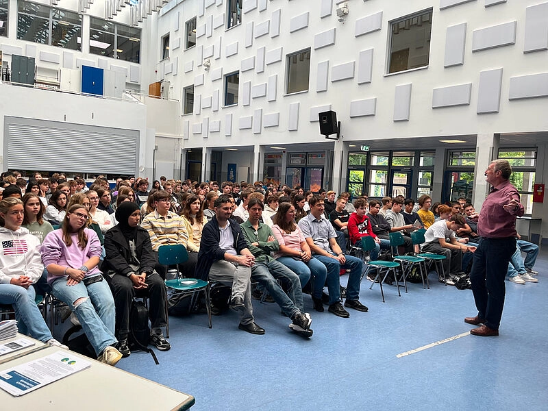 Am 11. Juni 2024 hat Professor Dr. Kümmerer von der TU Darmstadt an der Ricarda-Huch-Schule einen sehr interessanten Vortrag zum Thema „Unendlich: Unglaublich – unheimlich – unmöglich“ gehalten. Zuhörer waren die Mathematikleistungskurse der Q-Phase, die Profilkurse der E-Phase und zahlreiche interessierte Schülerinnen und Schüler aus unterschiedlichen Jahrgängen.