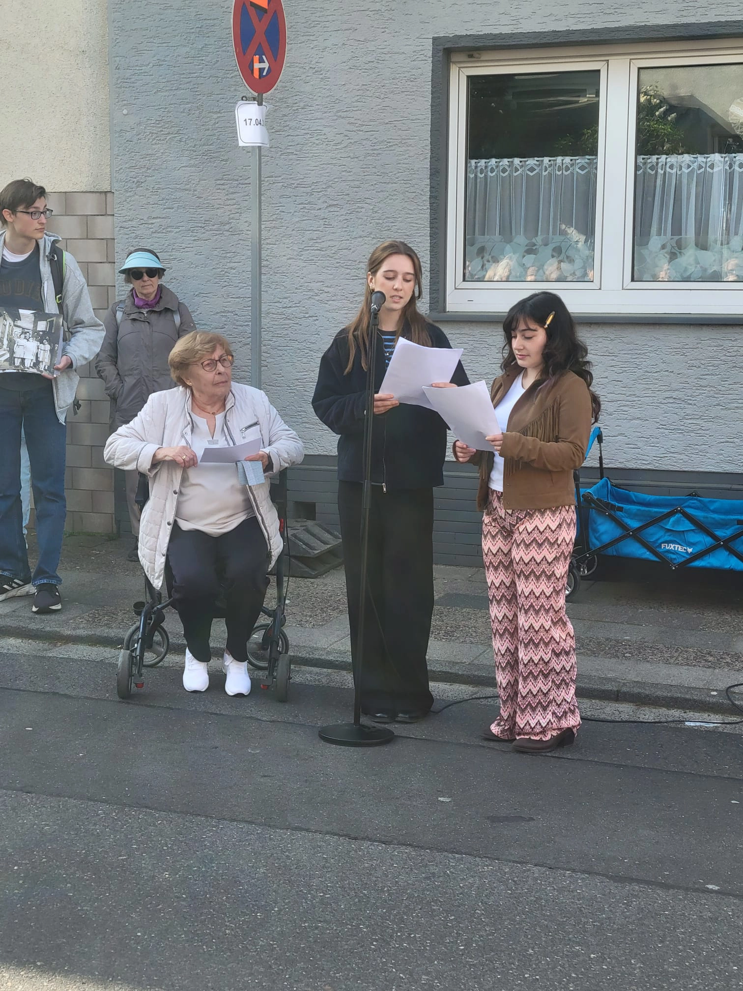 Stella: Mit diesen Stolpersteinen vor ihrem einstigen Wohnhaus wird ihnen heute ihre Namen und ihre Würde zurück. Sie sind nicht mehr nur Einträge in einer Deportationsliste, Nummern auf einem Bericht, sondern bleiben Teil unserer Gemeinschaft. Wir haben uns auch Gedanken darüber gemacht, was das für uns heute bedeuten kann.