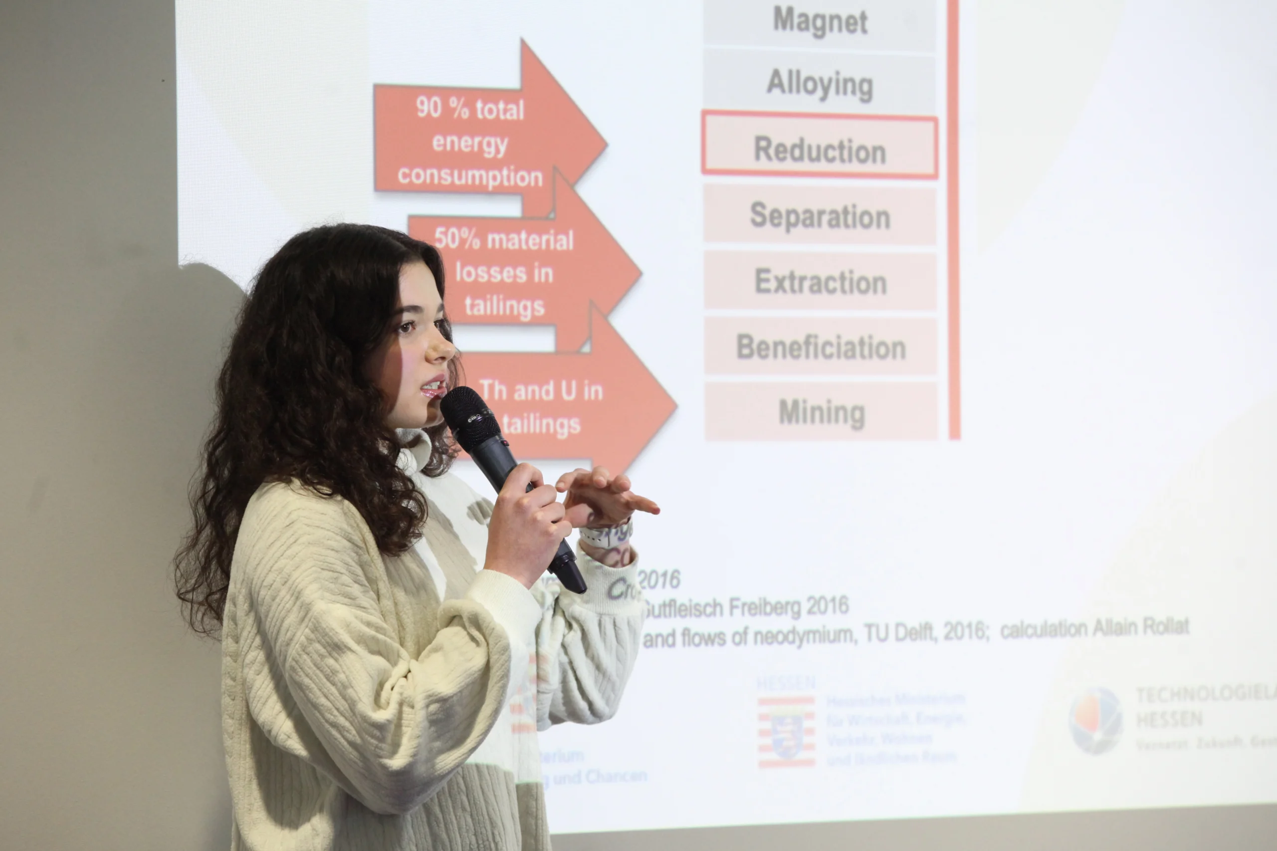 Für die 17-jährige Schülerin war es besonders interessant zu sehen, inwiefern das Recyceln von Permanentmagneten eine Lösung für die Kritikalität seltener Erden bietet, die außerdem sowohl kostenreduzierend als auch nachhaltig ist. Sie untersuchte selbst diese Fragestellung, welche verdeutlicht, dass Wissenschaft auch Lösungen für gesellschaftliche Probleme liefert. Die zahlreichen Schritte der werkstofftechnischen Herstellung eines hochenergetischen NdFeB-Permanentmagneten war zwar ein langer Prozess, sie erkannte dabei jedoch, dass Forschung nicht nur Wissen schafft, sondern auch ein abgestimmtes Zusammenspiel als Team erfordert. So hat Lenja nicht nur ihren Wissensstand über Materialwissenschaften erweitern können sondern lernte auch etwas fürs Leben: „Das Schöne an gemeinsamer Arbeit ist, dass man sich immer gegenseitig ergänzt und somit am Ende zusammen auf das optimal erzielbare Resultat blicken kann.”