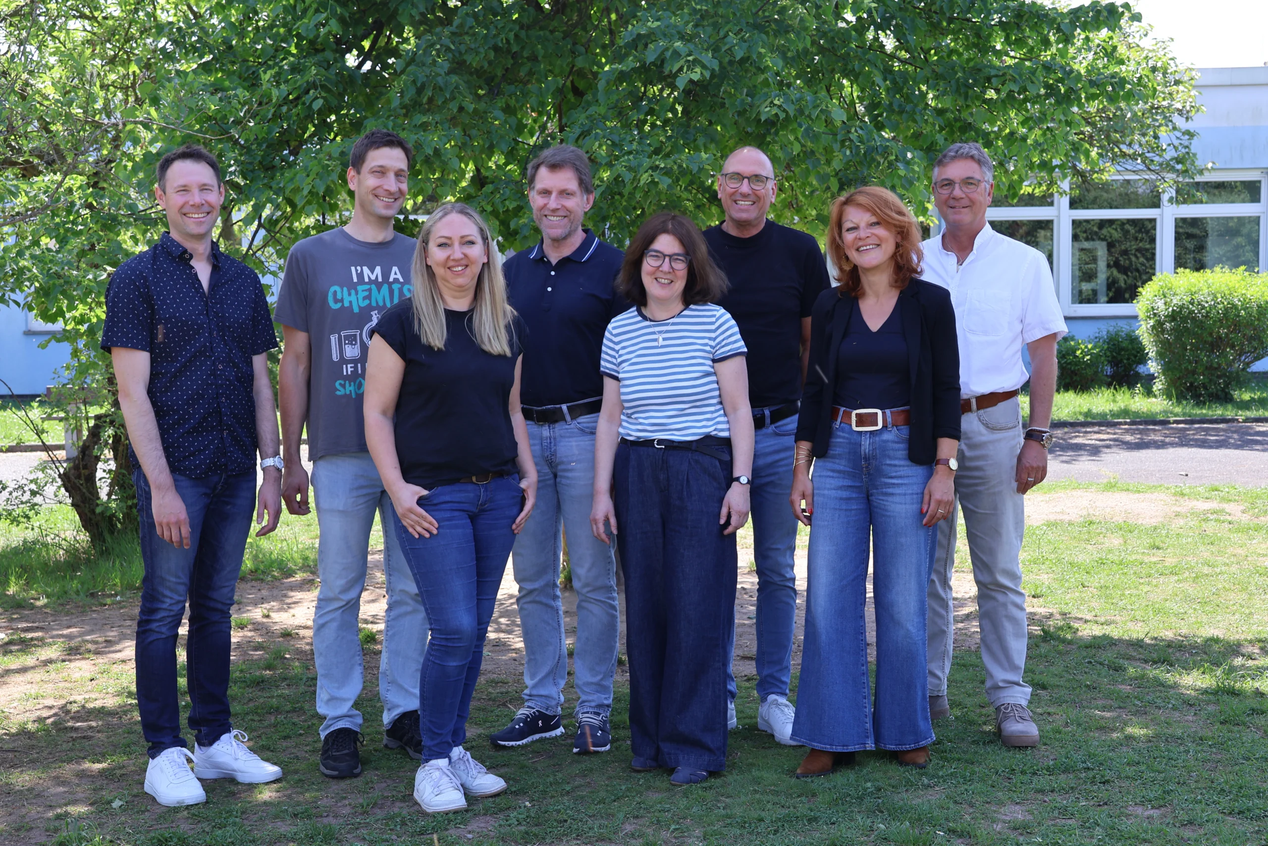 Von links nach rechts: Herr Stephan (Stufenleitung 8-10), Herr Karplak (FBL III), Frau Borger (Stufenleitung 5-7), Herr Tyszkiewicz (stv. Schulleiter), Frau Hausmann (FBL I), Herr Lampert (Schulleiter), Frau Hoffmann (FBL II), Herr Groß (Studienleiter)