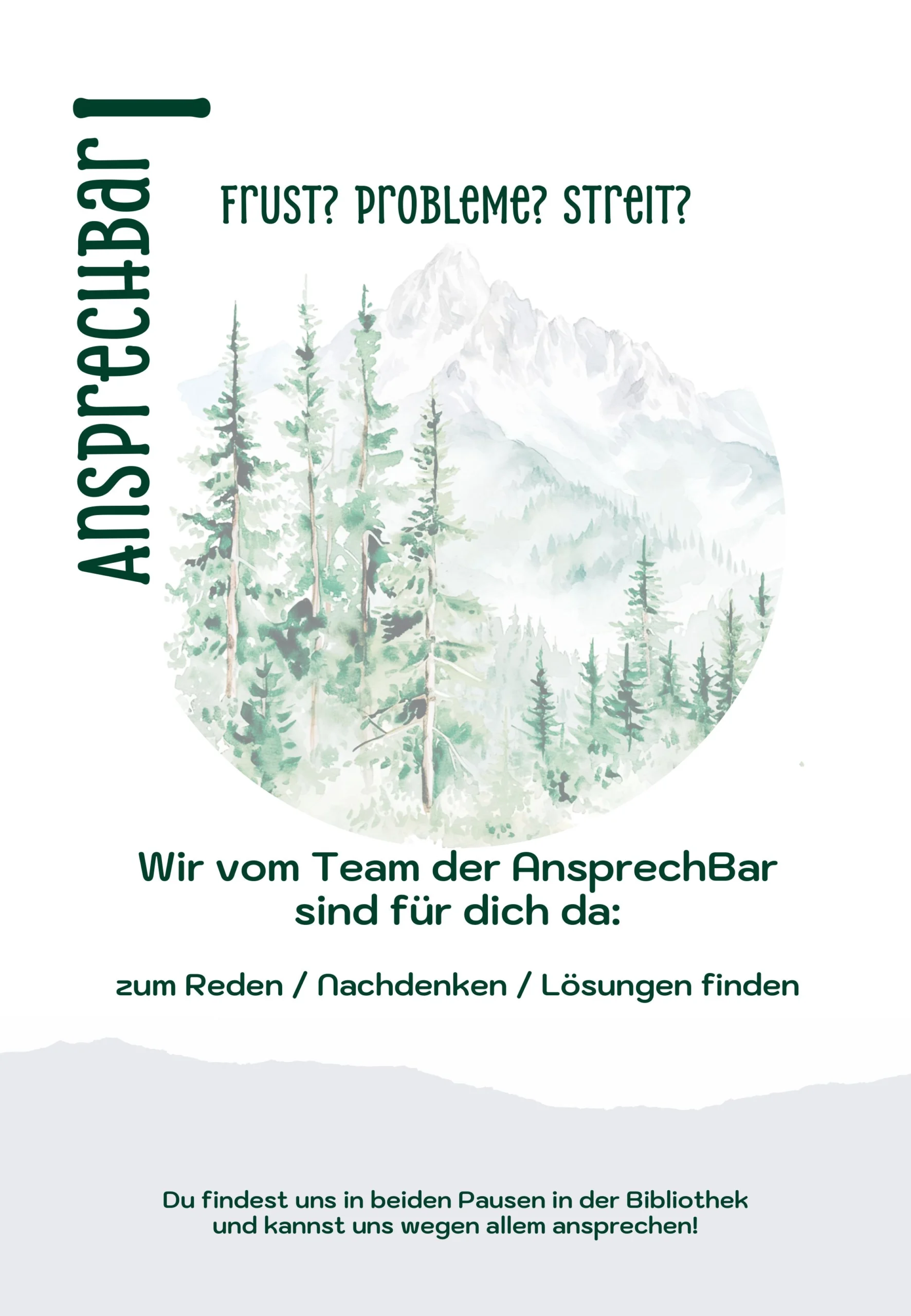 Das Team der AnsprechBar besteht aus mehreren Lehrkräften. Wer genau das aktuell ist, kannst du in unserem Moodle- Kurs sehen: